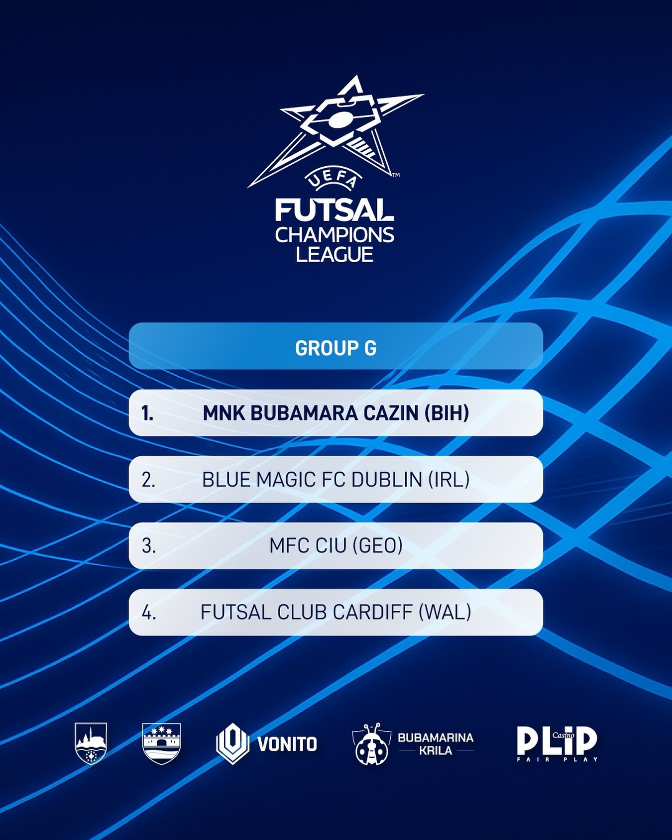 Žrijeb preliminarne runde UEFA Futsal Lige prvaka 2025/26 donio je sjajne vijesti za naš klub – MNK Bubamara Cazin bit će domaćin turnira u Grupi 6!