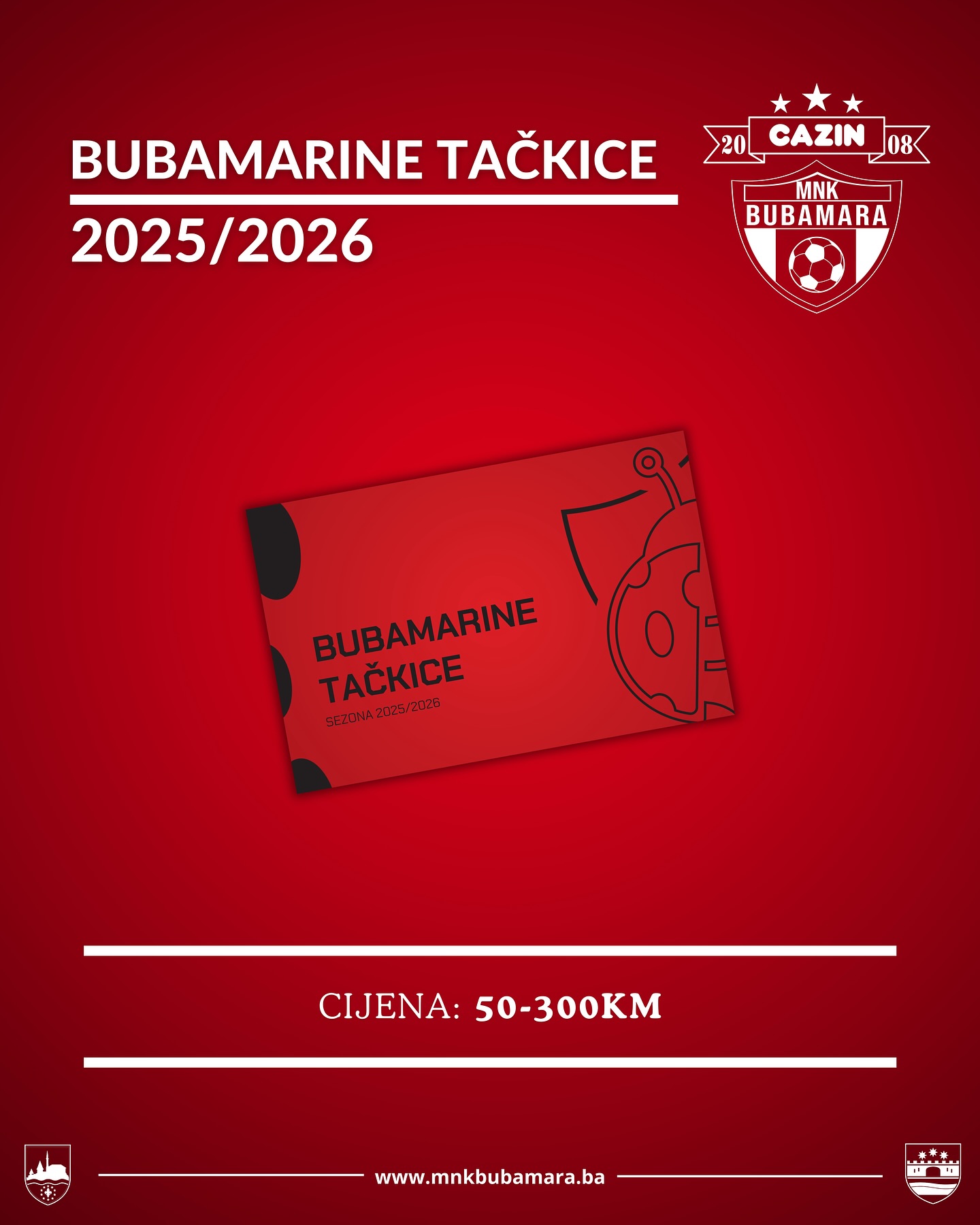 Rad 𝗠𝗡𝗞 𝗕𝘂𝗯𝗮𝗺𝗮𝗿𝗮 𝗖𝗮𝘇𝗶𝗻 možete podržati kupovinom članske kartice “𝗕𝘂𝗯𝗮𝗺𝗮𝗿𝗶𝗻𝗲 𝘁𝗮𝗰̌𝗸𝗶𝗰𝗲”. Novčanom donacijom od 50-300KM postajete dio Bubamarinih tačkica, a zauzvrat će vaše ime biti objavljeno na našim društvenim kanalima te uručena članska kartica.